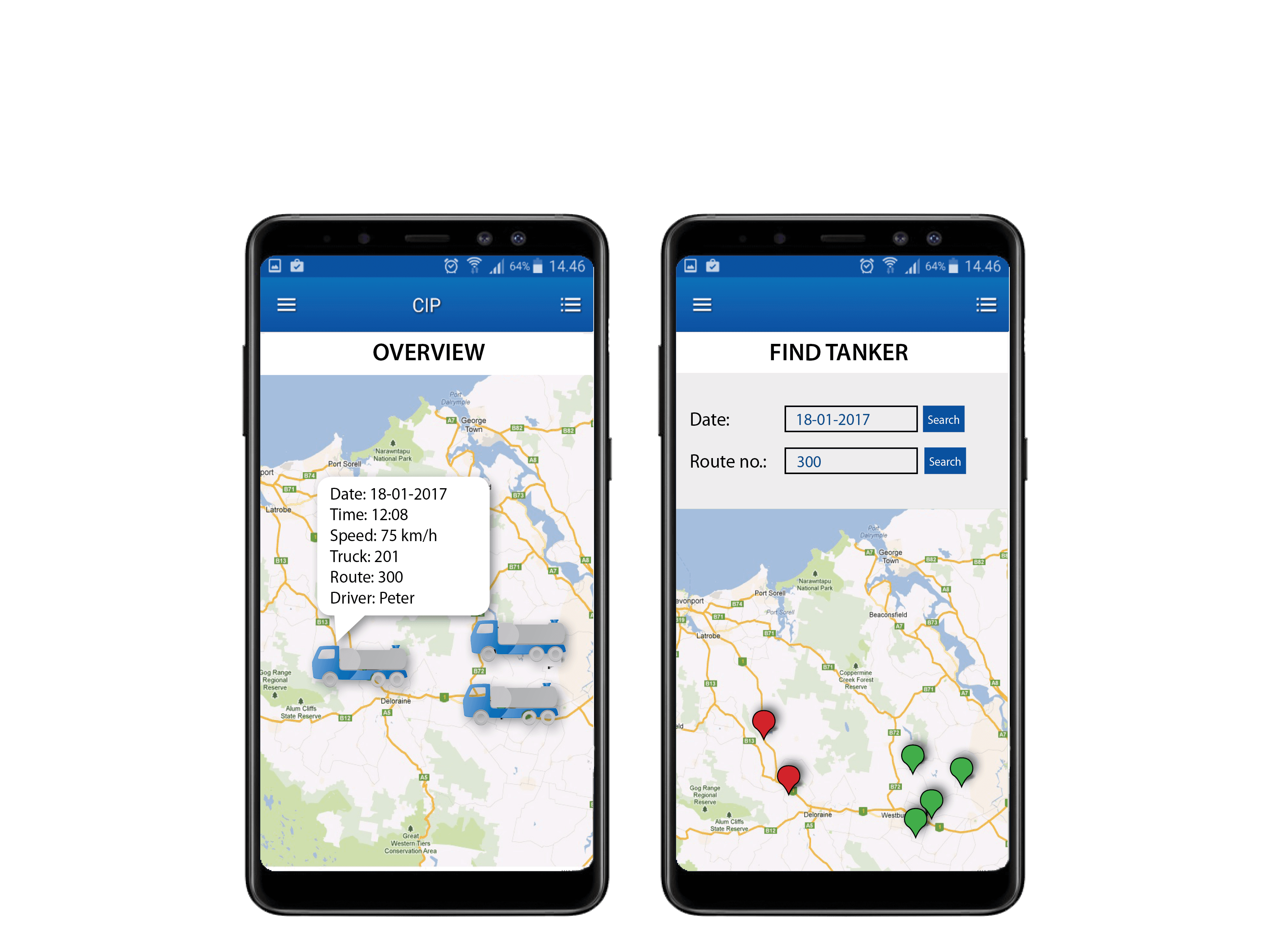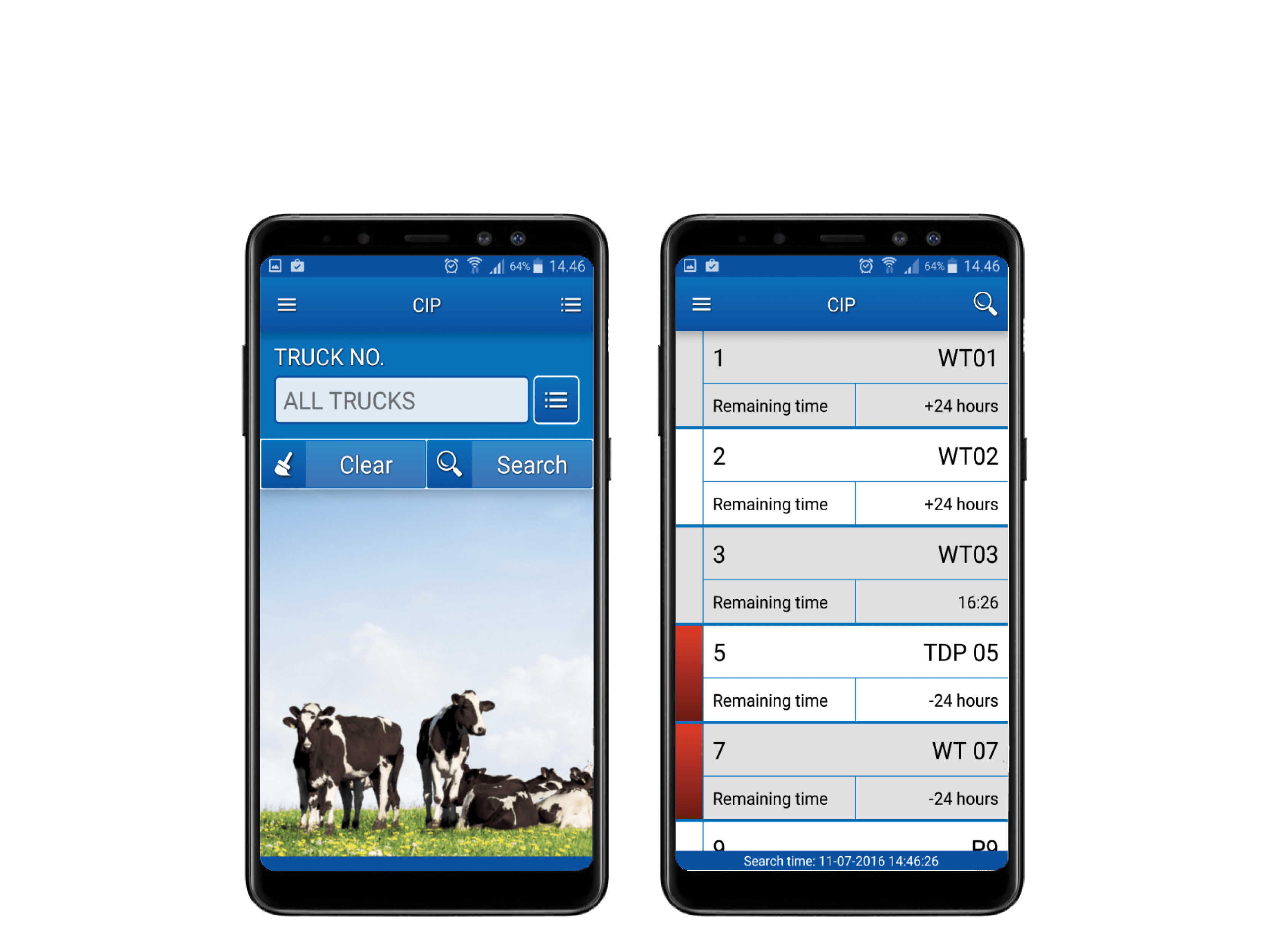 Mejeriet kan følge tankbilen, se hvor næste afhentning er og hvor tankbilen befinder sig i forhold til afhentningssted. Tankbilens CIP status fremgår også i APP'en.