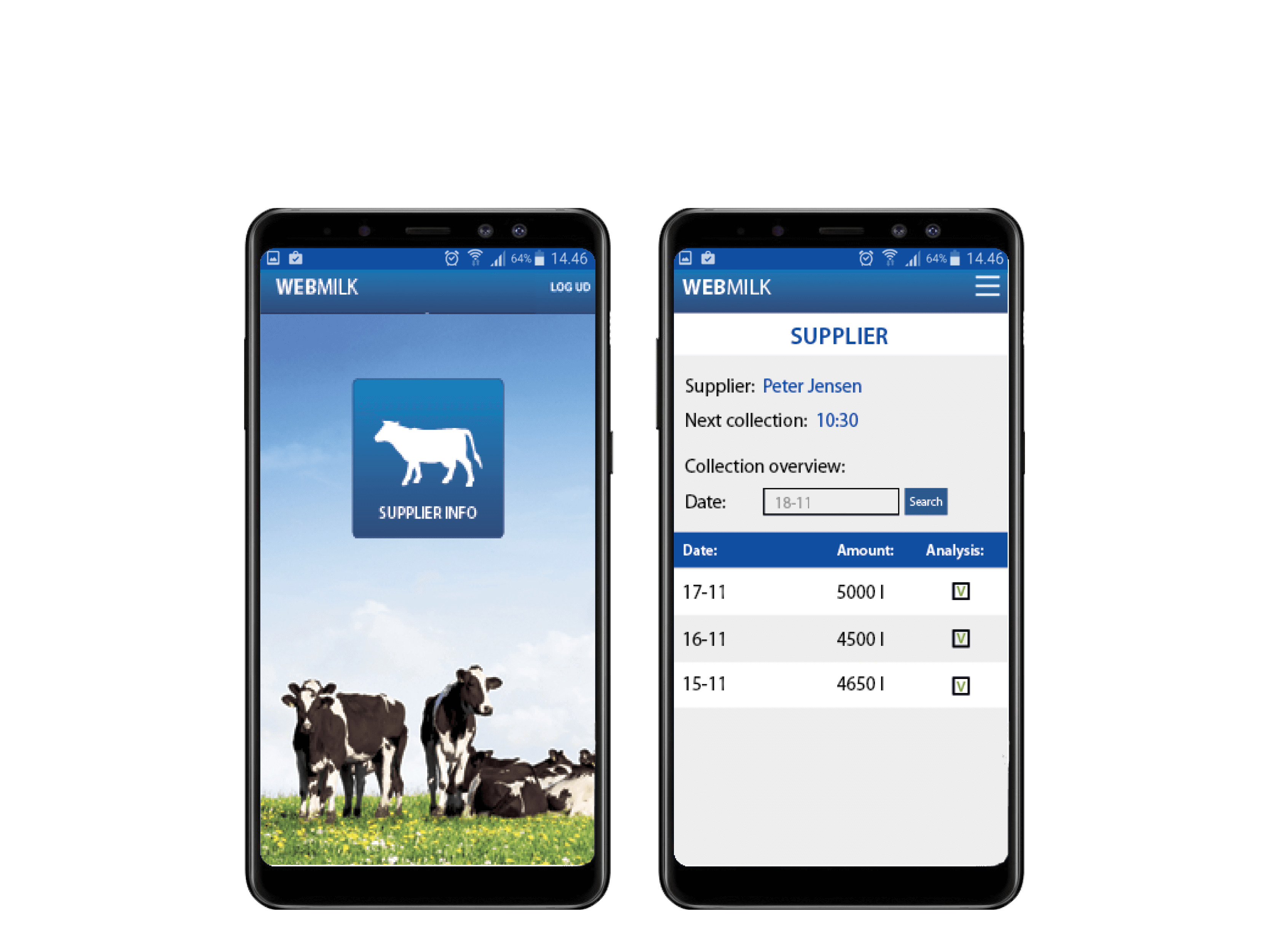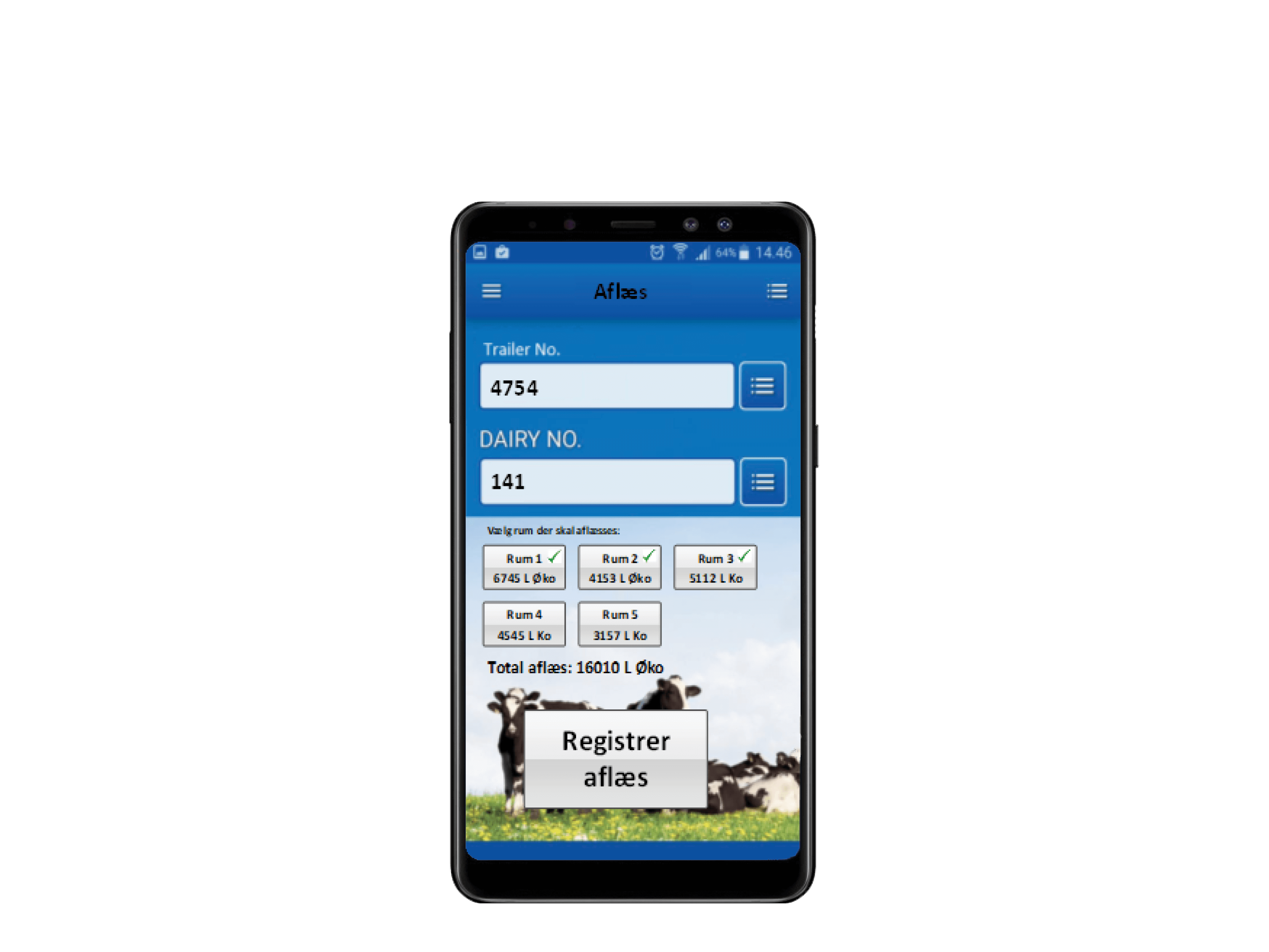 Med Milk APP er det muligt at se, hvor meget mælk og hvilken slags, der er pumpet ind i tankbilen samt hvilken kvalitet og temperatur mælken har.